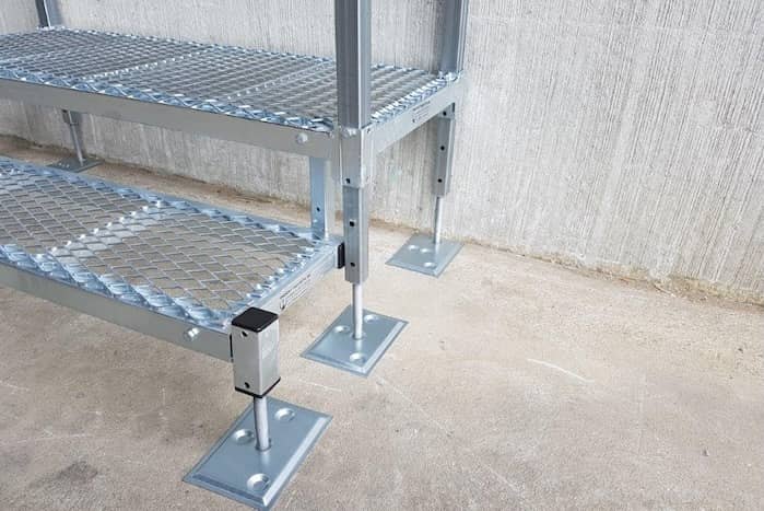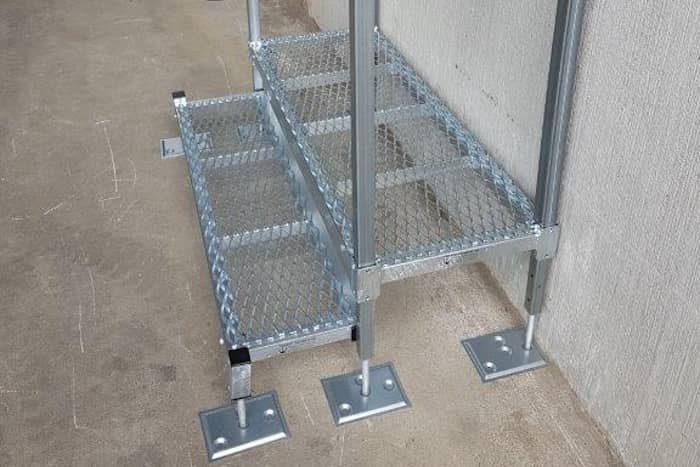 • Fixing points to allow the steps to be secured to the ground and fixing points on the legs of the step to secure the step to the building