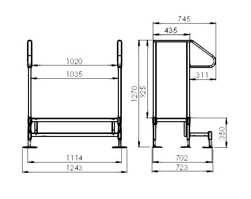 • Provided with double handrails for the top step, total height with handrails 1270mm