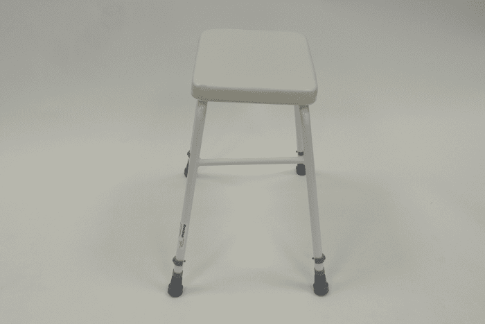 view of perching stool White adjustable perching stool side view of perching stool view of perching stool