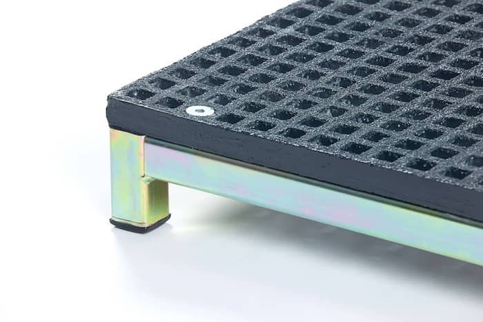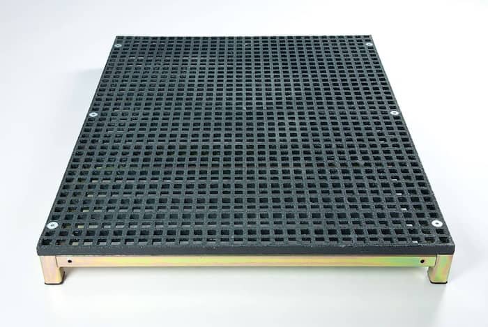 Full-width slip-resistant open-mesh GRP surface for optimum grip, including in wet weather.