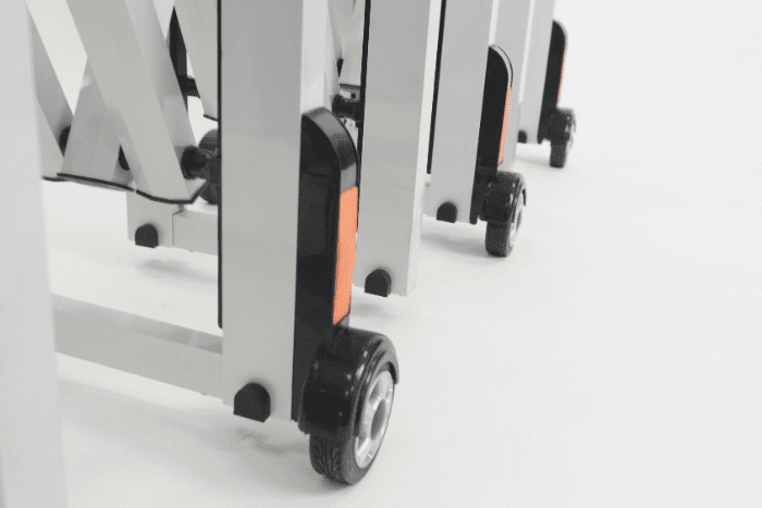 • Easy to manoeuvre by one person, provided on 6 wheels