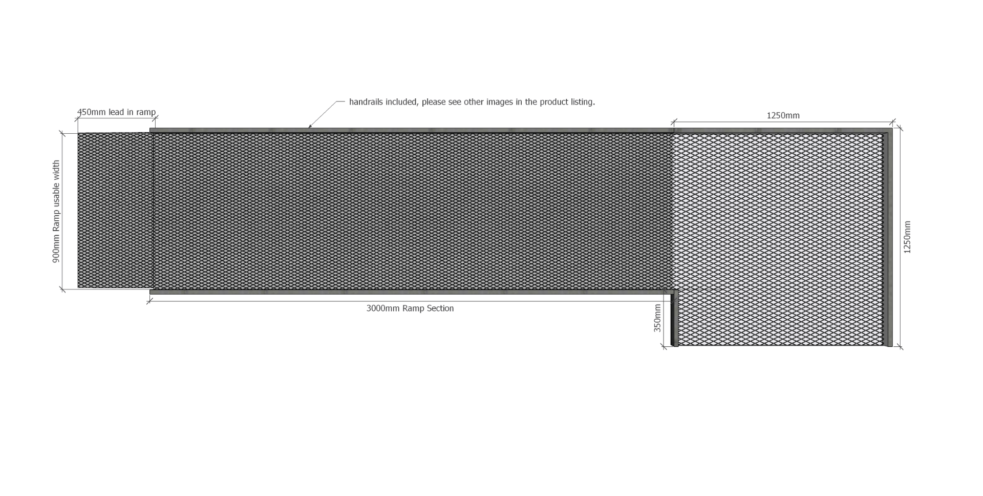• Lead In Ramp: 900mm wide x 450mm long