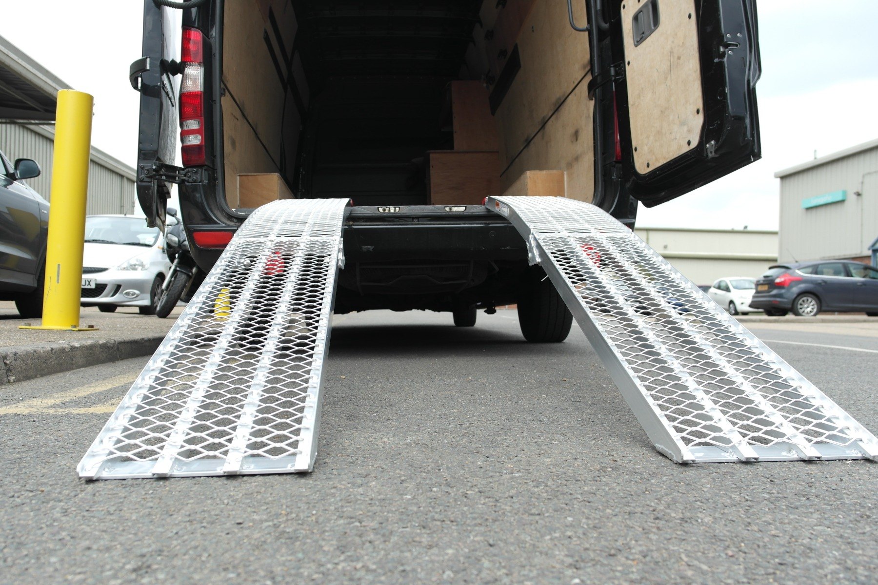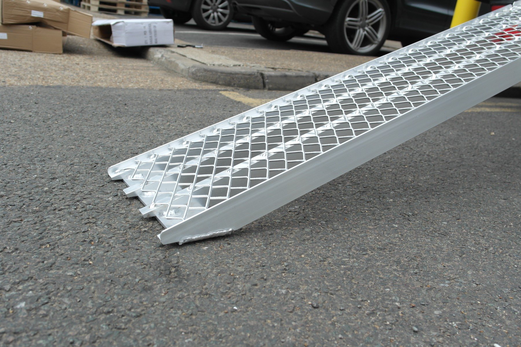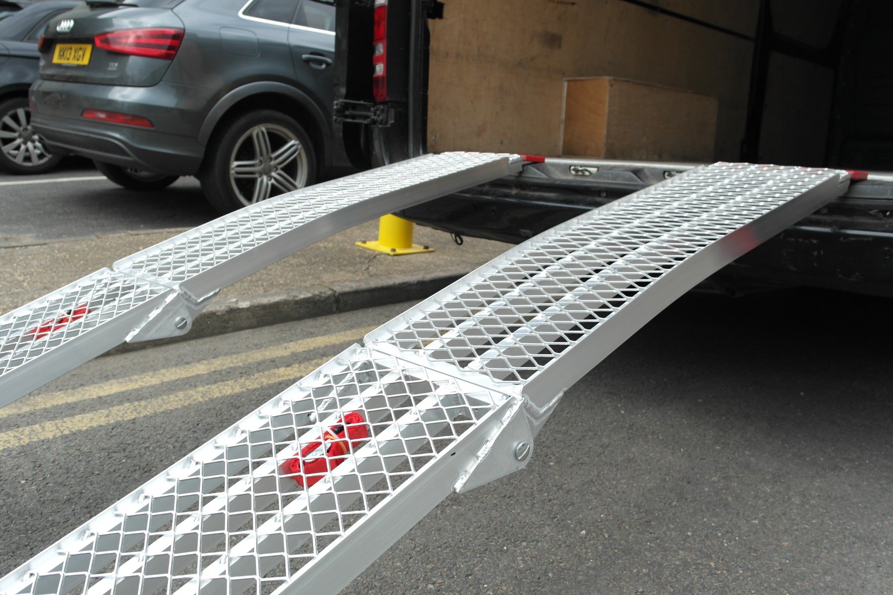 Folded motorbike ramp Portable mesh loading ramp Hinge on the aluminium loading ramp Mesh Motorbike Ramp (2260mmx285mm) Mesh Motorbike Ramp (2260mmx285mm) Mesh Motorbike Ramp (2260mmx285mm) Mesh Motorbike Ramp (2260mmx285mm) Mesh Motorbike Ramp (2260mmx285mm) Mesh Motorbike Ramp (2260mmx285mm) Angled foot of the aluminium loading ramp to provide smooth entry onto the ramp Ramp resting onto van for loading Curved loading ramp resting onto van Angled foot of the aluminium loading ramp Loading ramp resting on concrete floor Safety strap Pair of aluminium loading ramps with mesh surface Pair of aluinium loading ramps folded Mesh surface and hinge Pair of alloy loading ramps Angled foot of the loading ramp hing of the bike ramps Pair of aluminium loading ramps resting on van Curved aluminium loading ramps Curved ramp Mesh surface Full length ramp