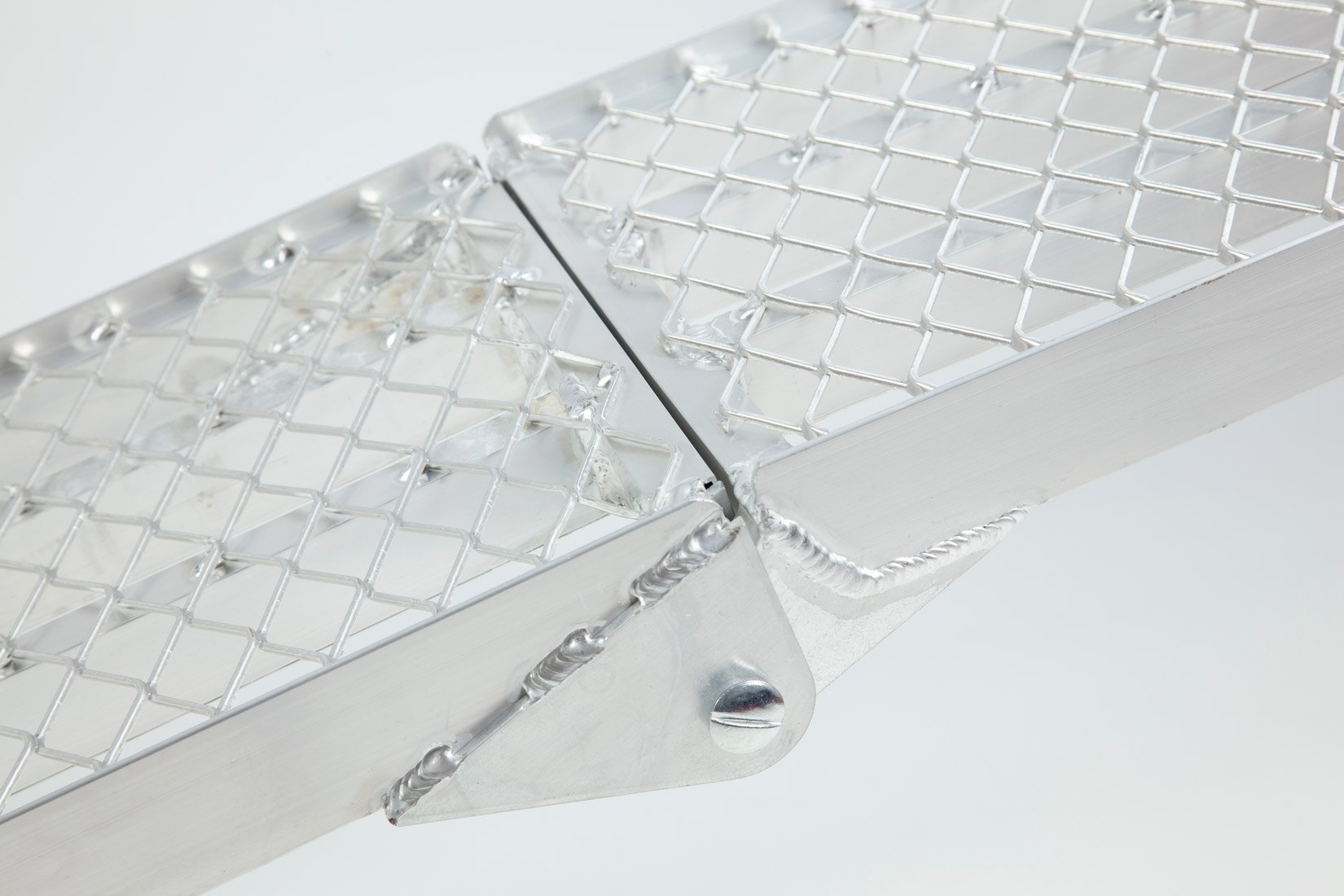 Folding bike ramp with a mesh surface to provide optimum grip during loading. This lightweight loading ramp, which offers a 340kg capacity, can be used as a single ramp to load motorbikes into vans or as a pair to load quad bikes and ride-on-mowers.
