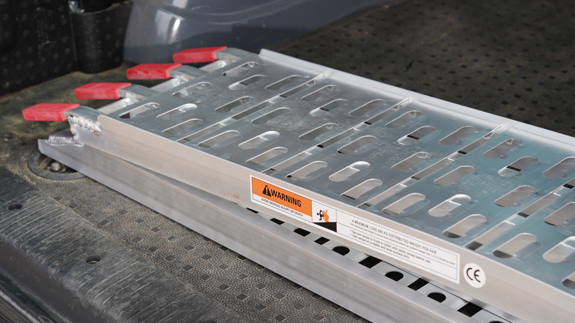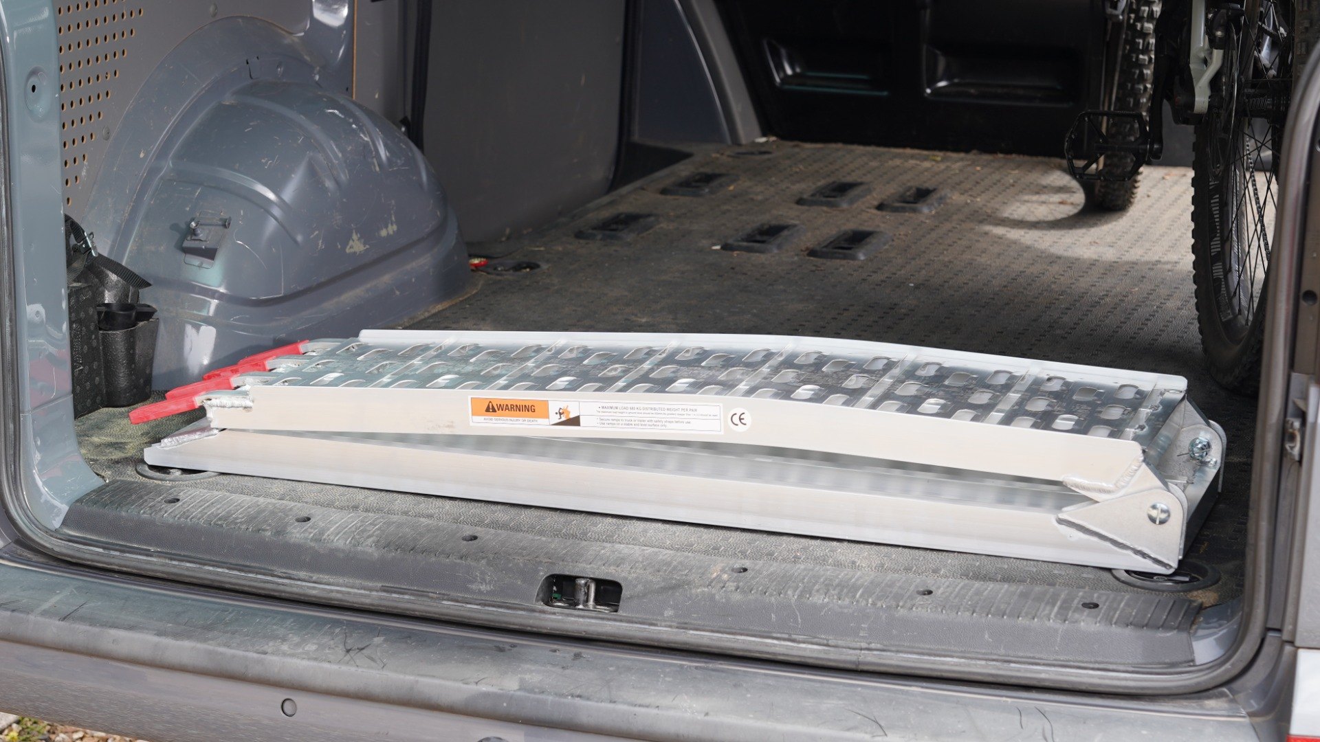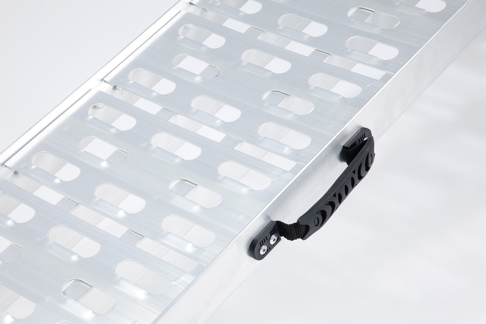 - Lightweight aluminium folding loading ramp with cut-out grip system.