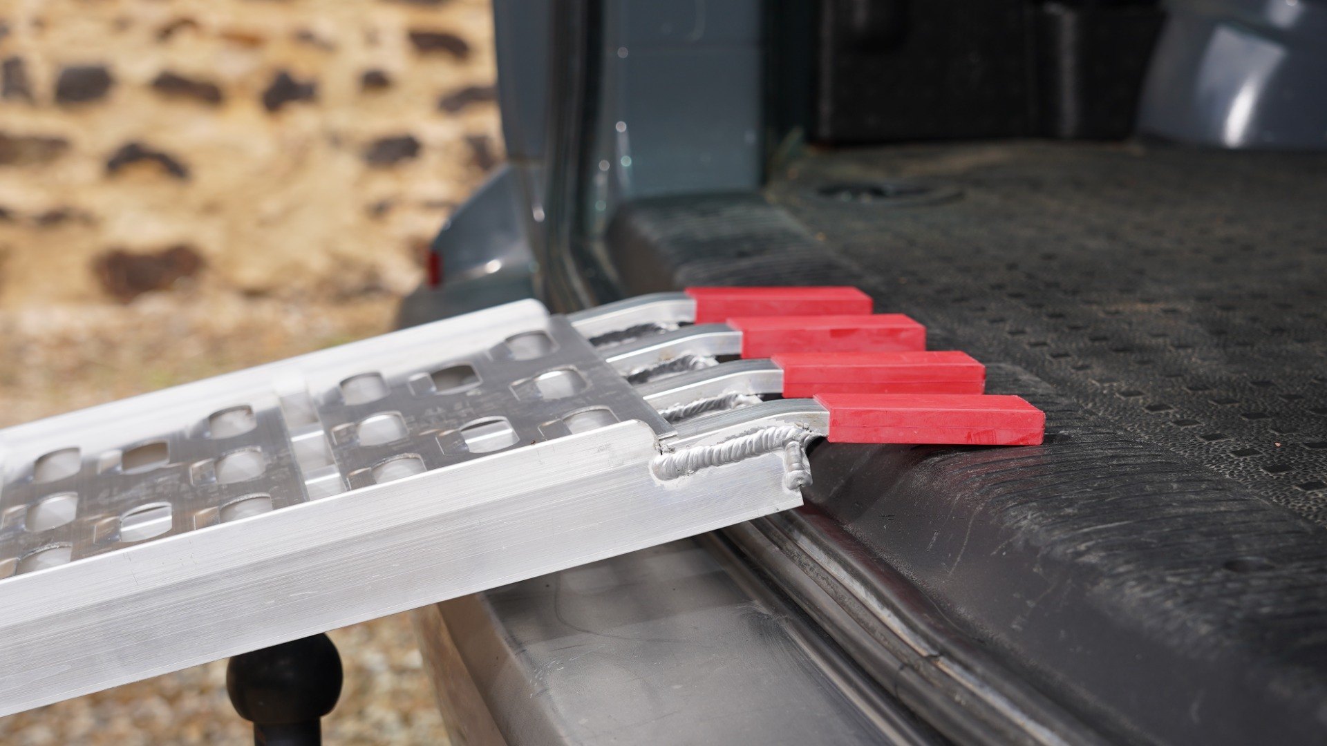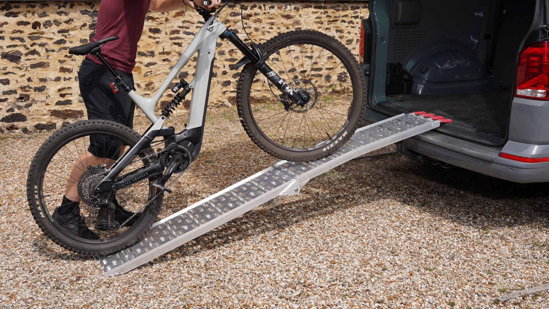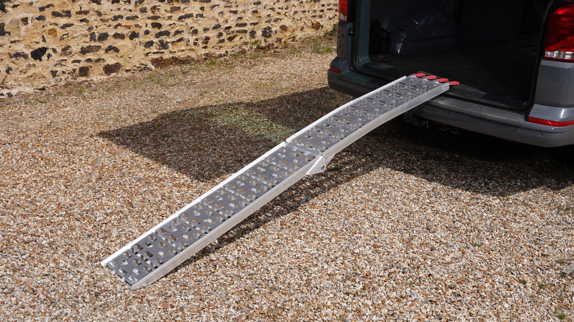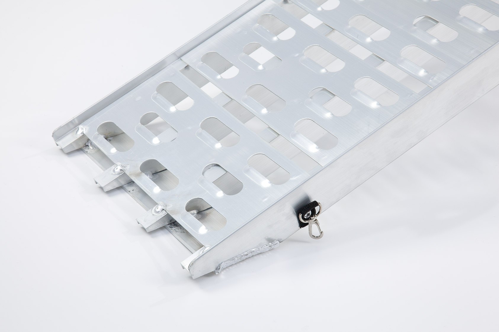 - Lightweight aluminium folding loading ramp with cut-out grip system.