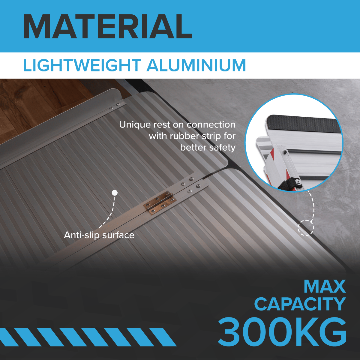 - No installation is required, simply rest on the access ramp onto the step, kerb or doorway and start using