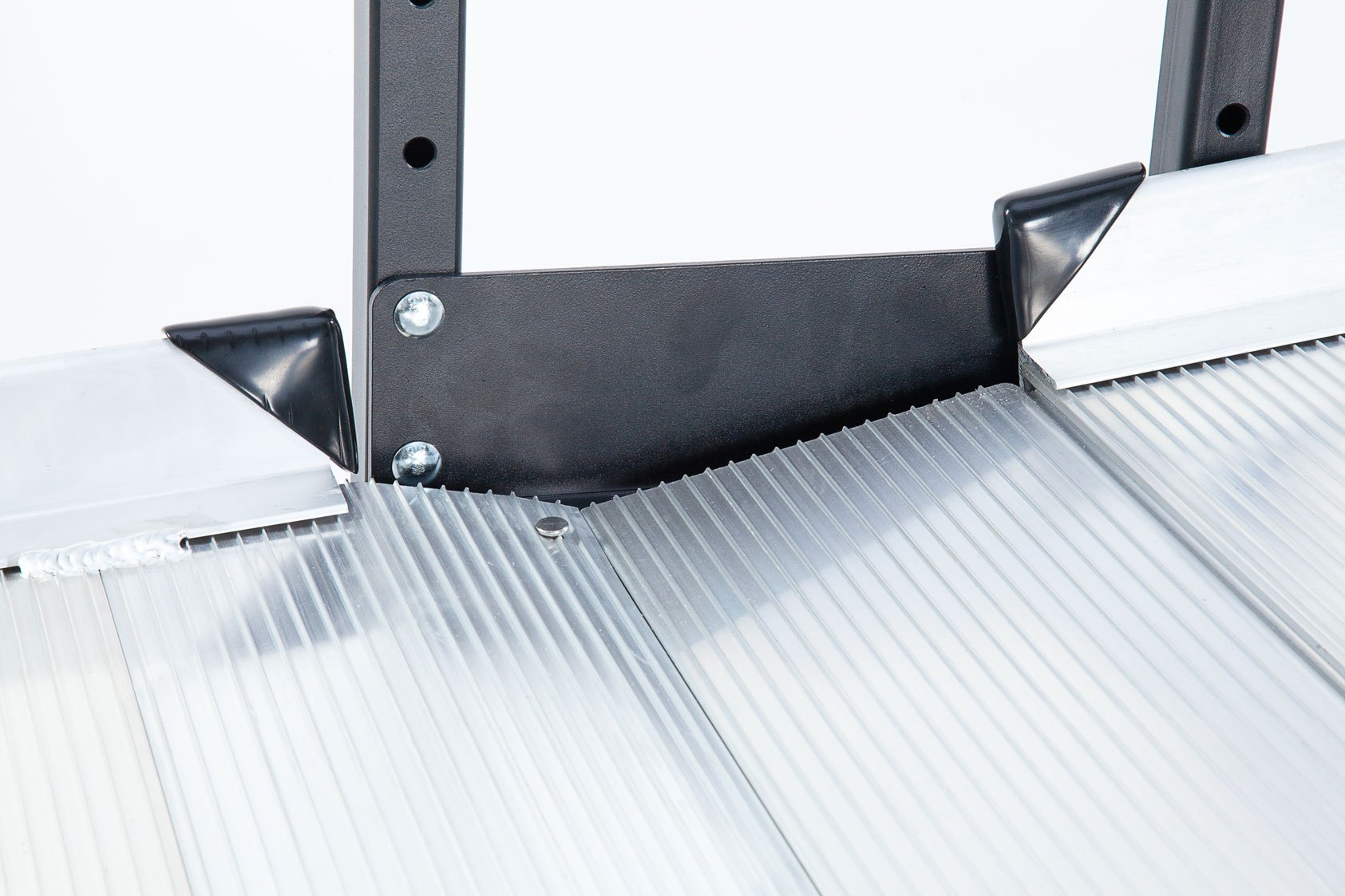 Designed for use as a portable or fixed solution, the adjustable joining support allows the ramps to securely be connected to the support during use. For enhanced stability, the joining support can be secured to the ground (fixings not included).