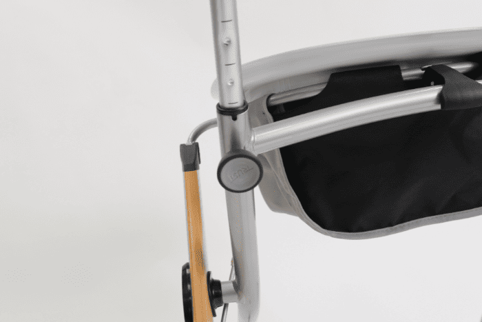 When not in use, the stylish rollator folds for storage. At only 6kg, the lightweight walking aid can be lifted and stored in a cupboard or transported in the car when needed.