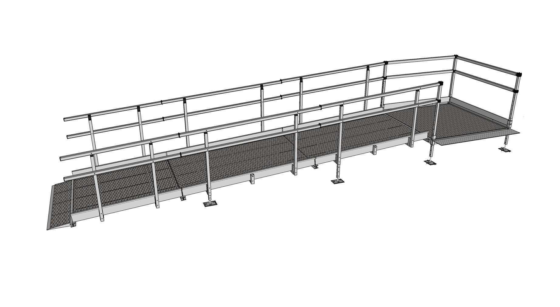 Modular Ramp Kit, 5200mm long, 1500mm wide, with double height handrails and mesh anti-slip surface.