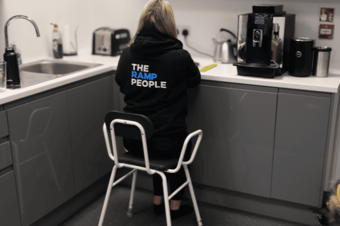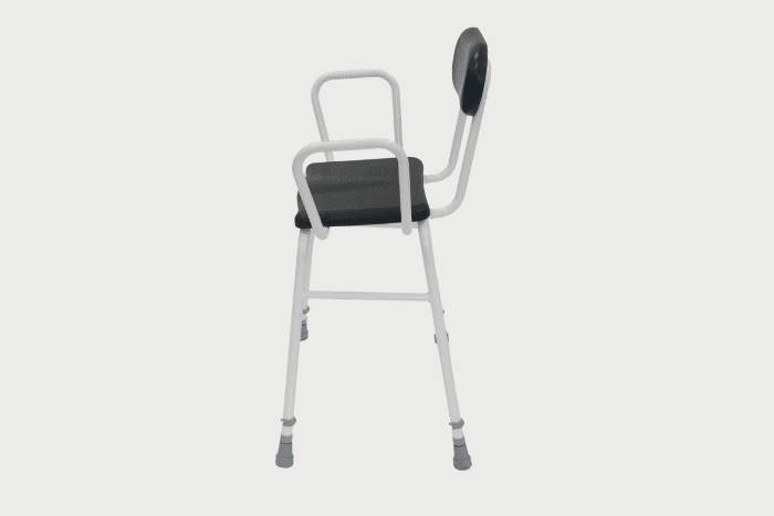 The Ramp People's Perching Stool is designed to provide a safe place for users to sit whilst undertaking daily tasks around the home. The seat is set at a gentle angle to allow users to perch on the seat, in turn promoting better posture and making it easier to move from sitting to standing. The stool is height-adjustable to allow you to set it at a comfortable height. It also includes armrests on both sides to assist with standing and sitting down, along with a backrest for enhanced comfort and support.