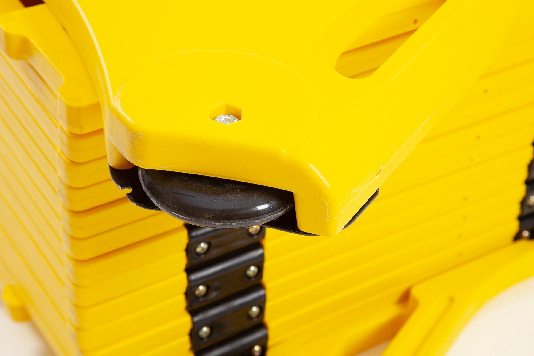 At 16.3kg, the barrier can easily be lifted with the built-in carry handleds or wheeled into the storage location.