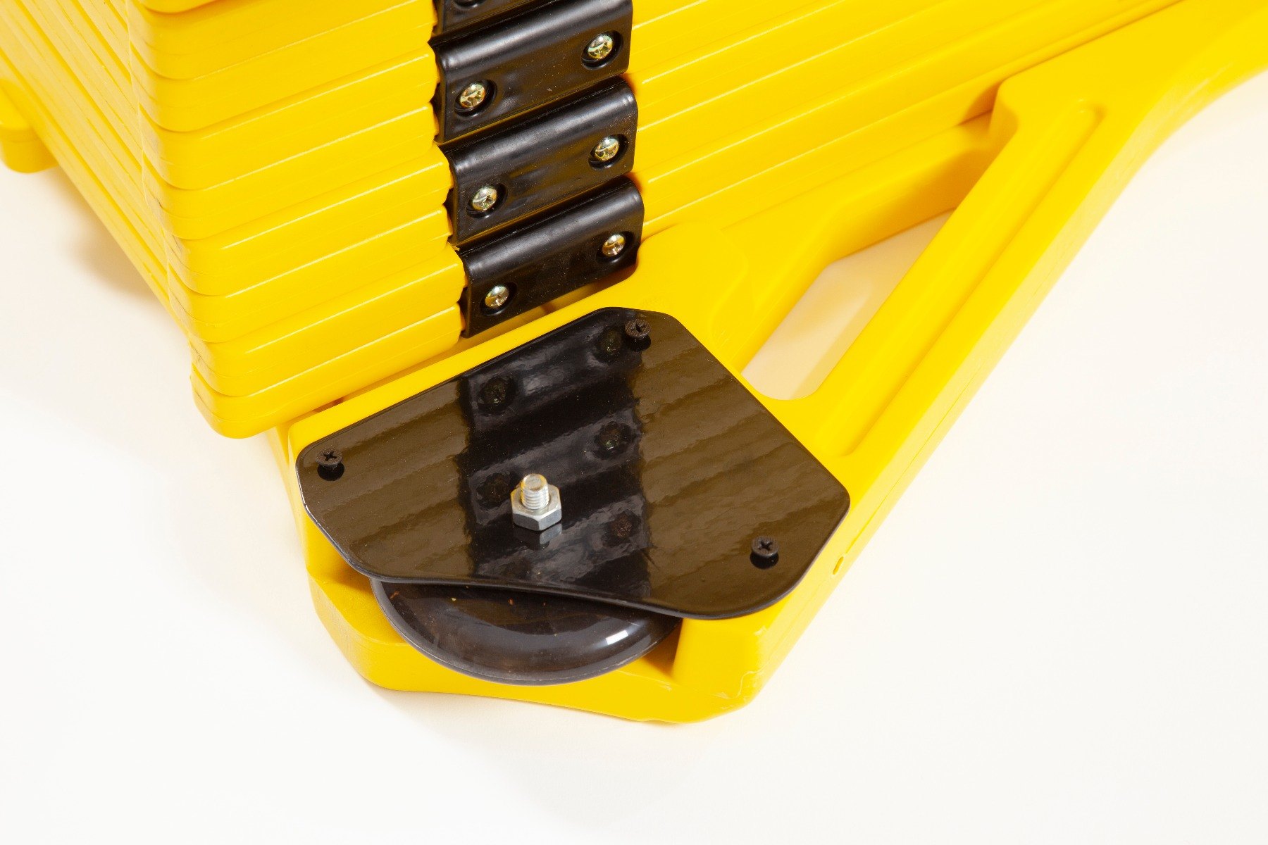 Highly visible yellow design with warning signs to alert passers-by of hazards.
