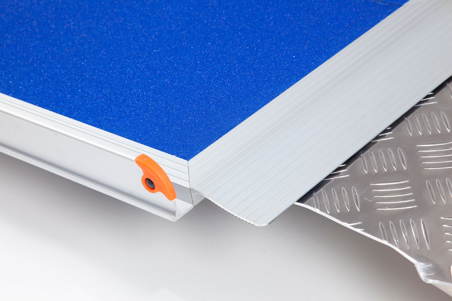 Premium length folding ramp in combination with our standard Aluminium threshold used as a kit will combine the best of 2 ramps to provide a quick and easy ramp solution for access up to and over the threshold.