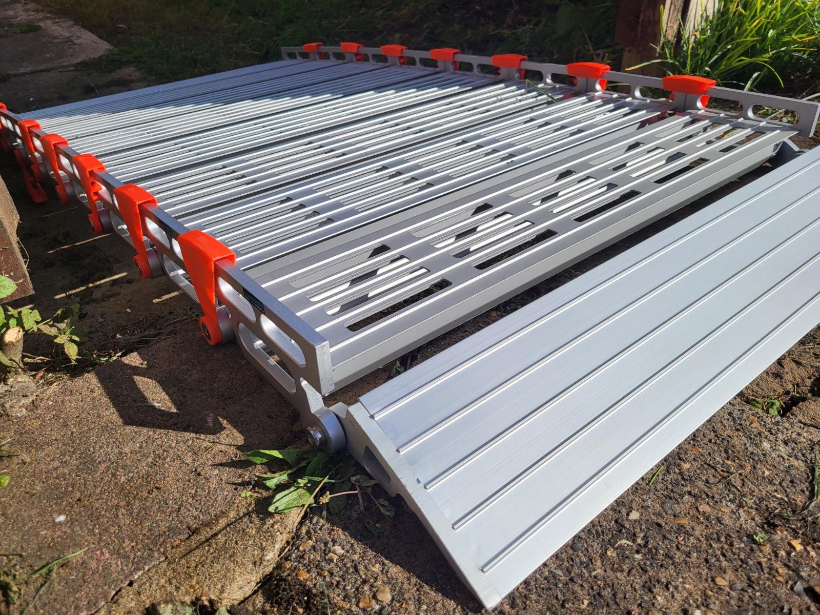 The ramp can be rolled for storage. The modular design allows the ramp length to be amended when needed.