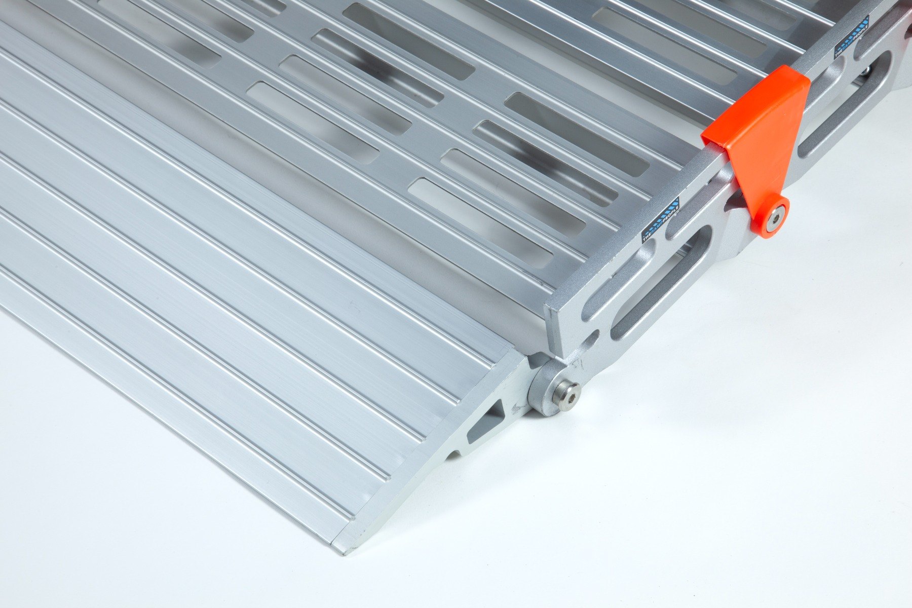 Due to the modular design, sections can be added and removed when required, whether you wish to extend the ramp to provide a smoother gradient or if you wish to reduce the length to use the ramp in an area with limited space or simply require an adjustable ramp to use in a variety of locations.
