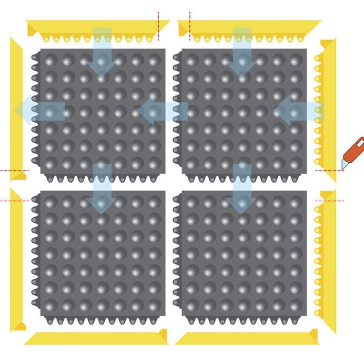 A tooled grid of 30 cm x 30 cm sections on the underside of the mat makes further customization quick and easy.