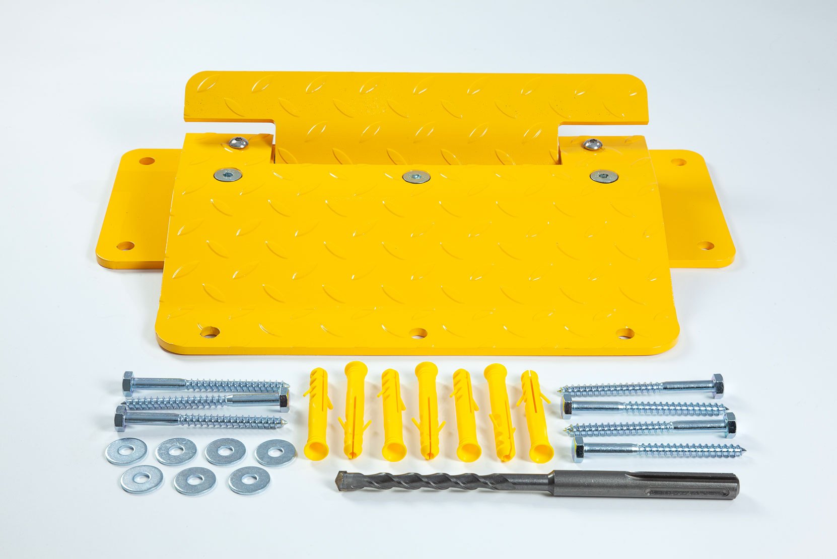 Supplied with pre-drilled fixing points and fixings for tarmac and concrete and an SDS Max drill bit.