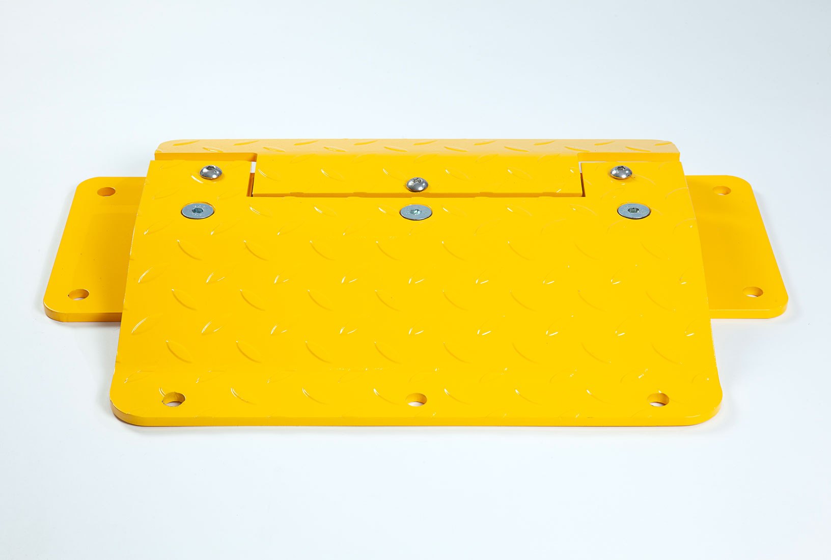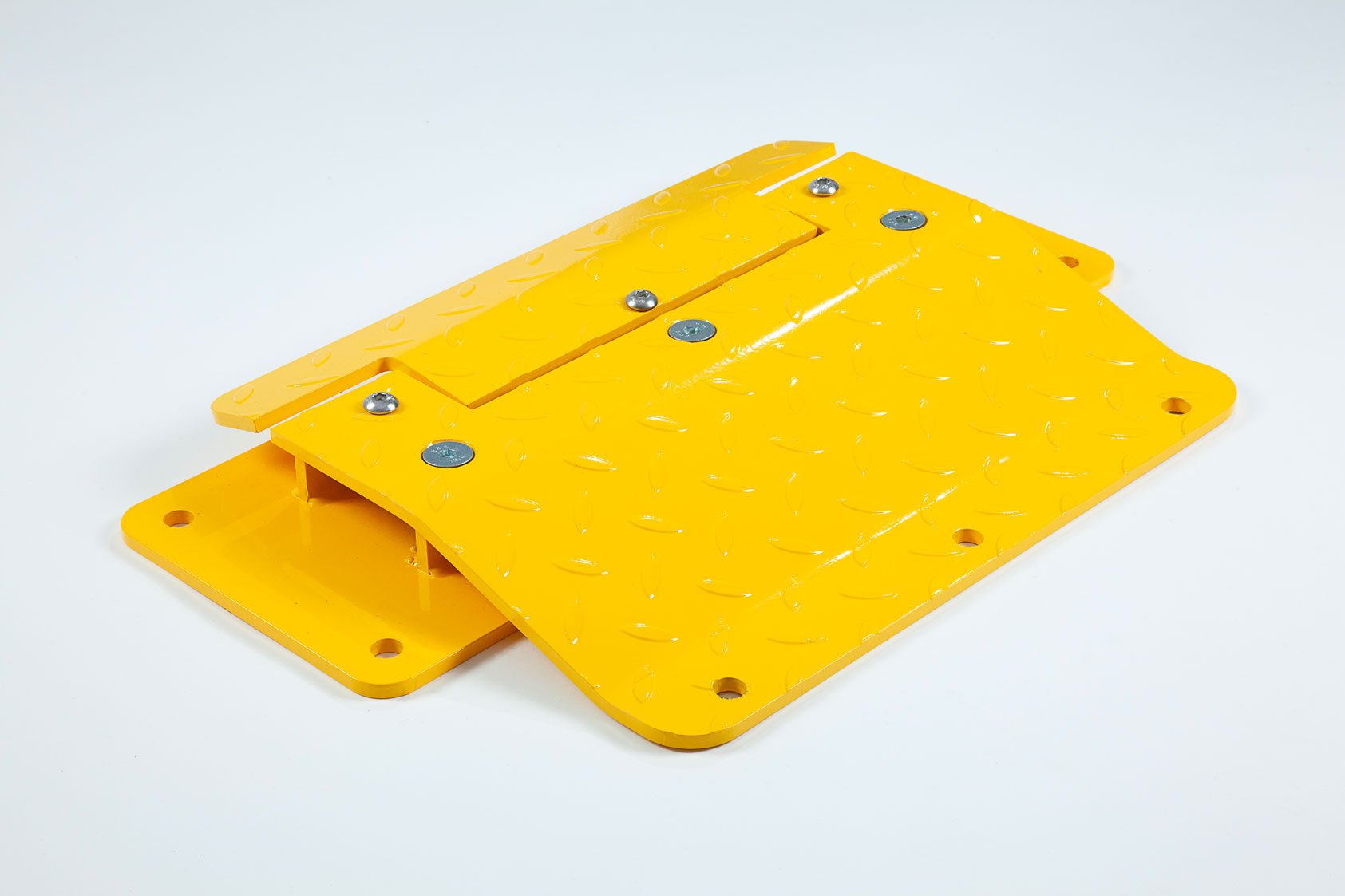 High-visibility powder-coated chequered surface to provide optimum grip when passing over the plates.