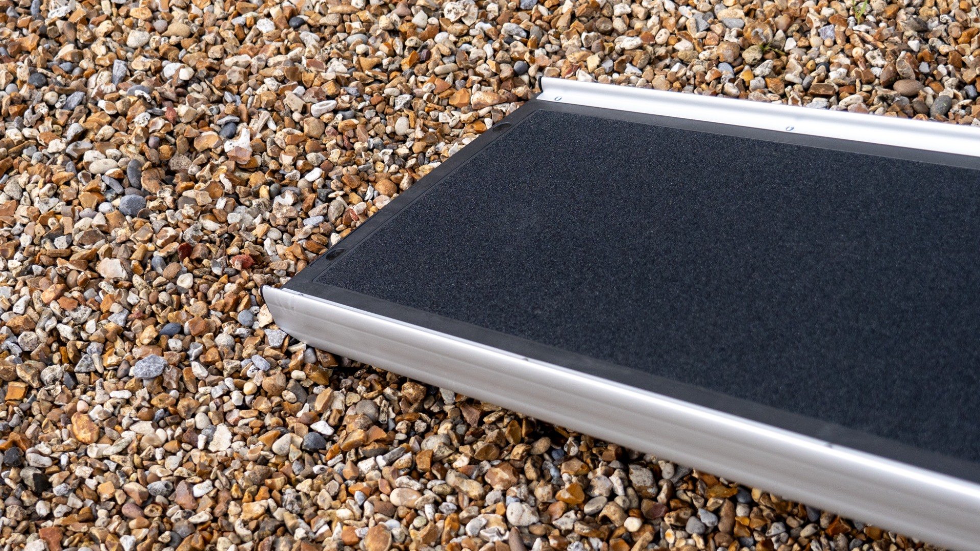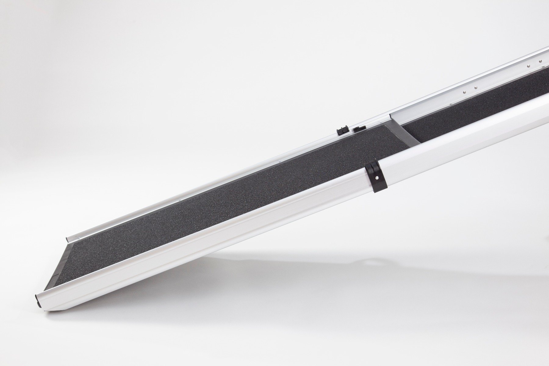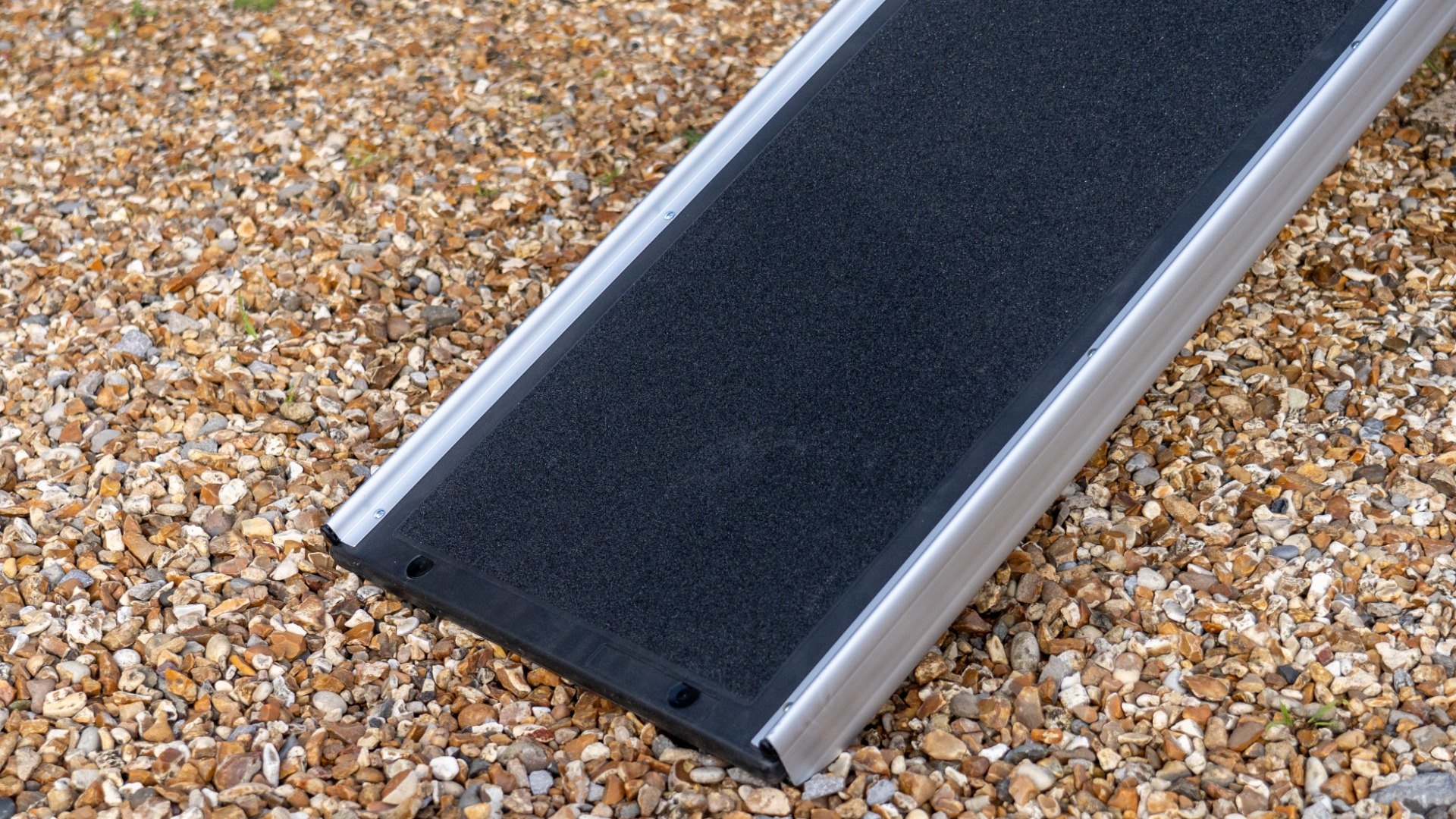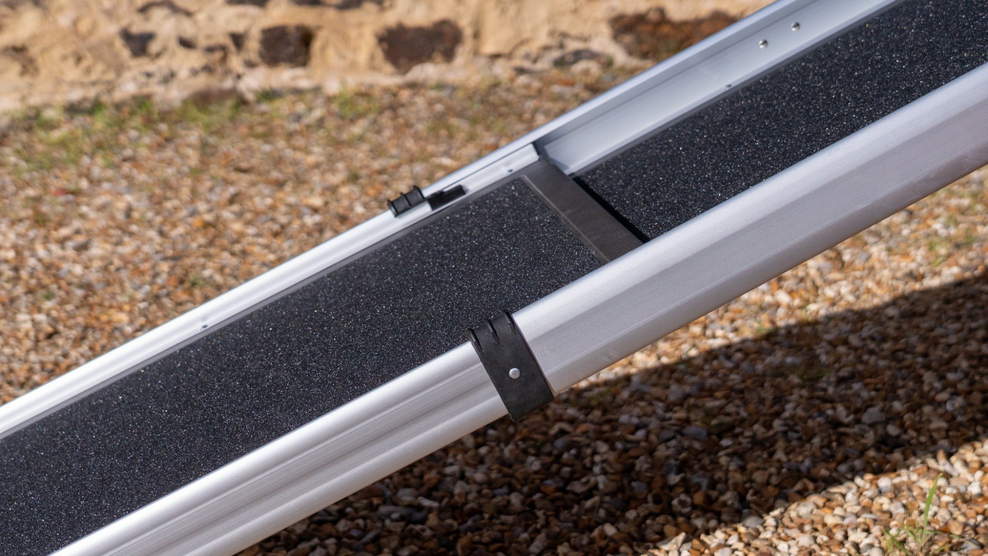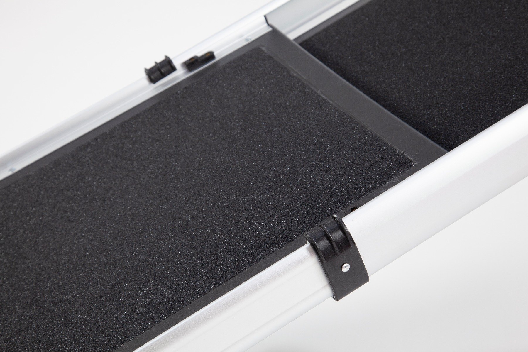 The ramp remains securely in place due to the curved rest on the connection and the stable foot of the ramp whilst the safety edges and anti-slip surface enhance safety during use.