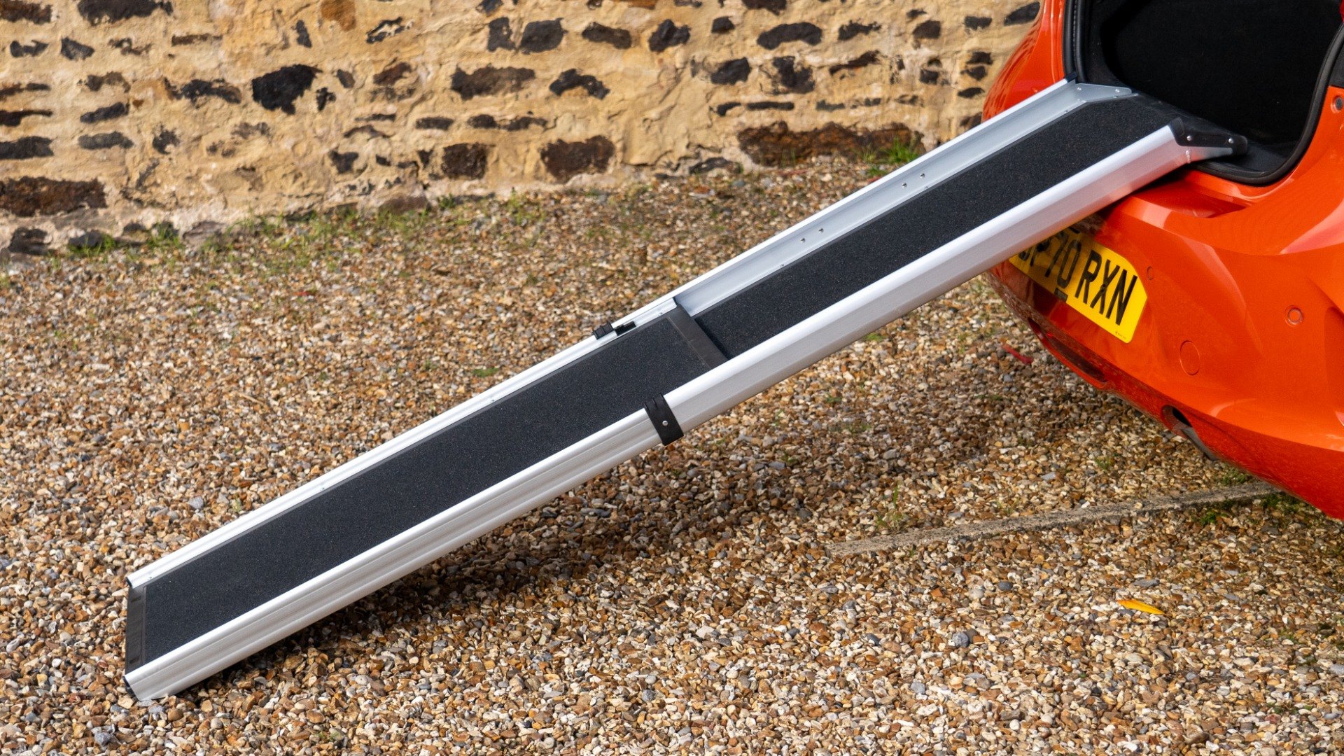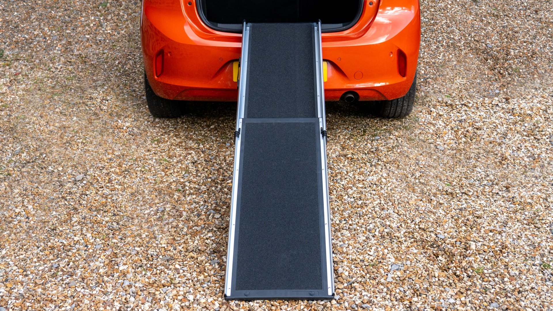 Simply extend the ramp and rest it on the car boot or steps.