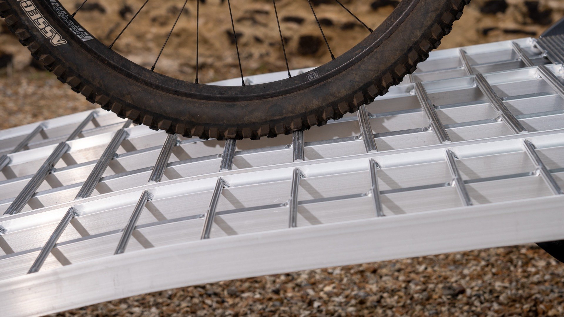 Notched cross rungs provide extra traction for wet tyres and allows debries to drop through the ramp.