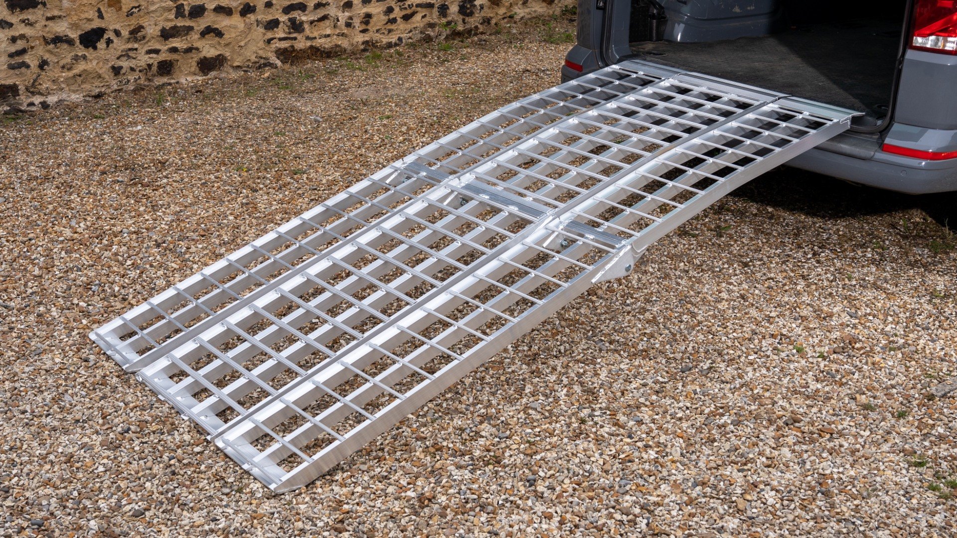 Quick and easy to use – simply unfold the ramps and secure them with the provided safety straps.