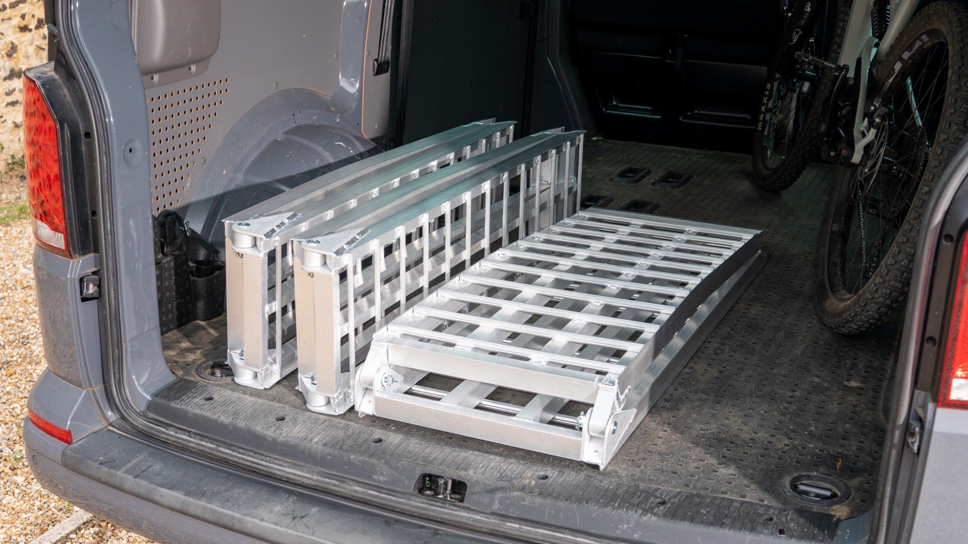 Supplied as a set of three ramps, the kit allows you to sit on your bike during loading. When required, the central ramp can also be used on its own, allowing you to walk alongside the bike while loading. The outer pair can be used independently for loading quad bikes, golf buggies, and similar vehicles.