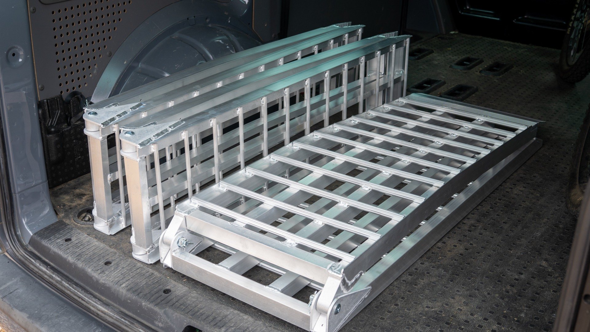 Each ramp folds to half its length for storage, perfect for storing in the back of the van or trailer.