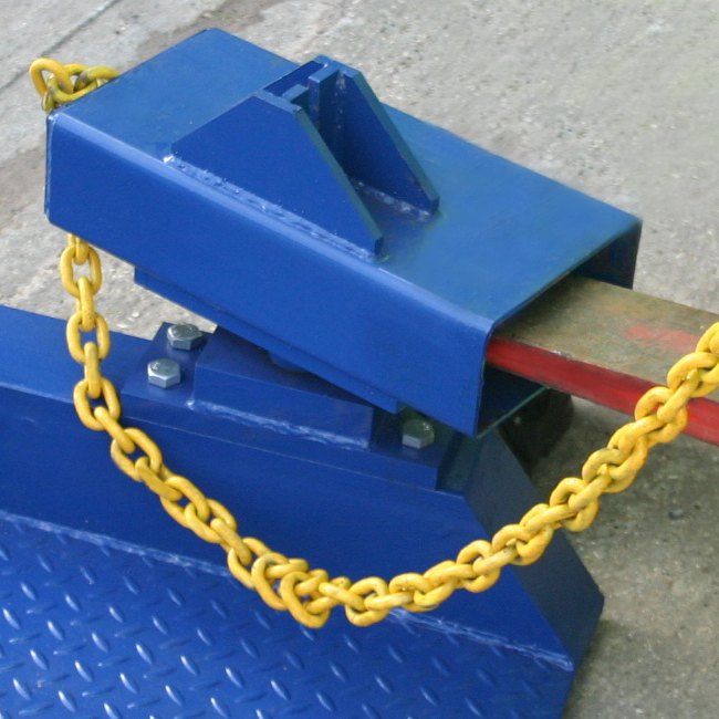 These ramps are fully certified and tested and feature a reinforced steel undercarriage, high traction mesh anti-slip surface and come supplied with swivel fork mount, steel chains and clamps and hydraulic assist. Wheel chocks are also available at an additional charge for additional security whilst the ramp whilst stationary and not in use.
