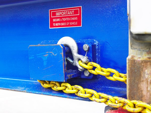 The chains securely connect the ramp to the container, whilst the extended rest on the connection (300mm length) ensures it remains securely in place.